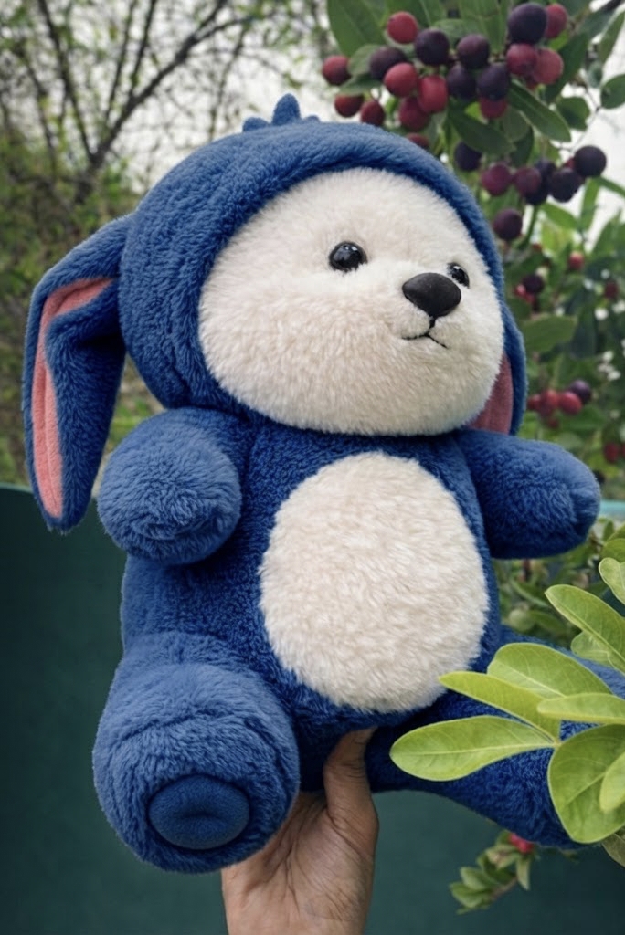A super-soft, adorable plush teddy wearing a blue bunny costume — perfect for birthdays, anniversa...